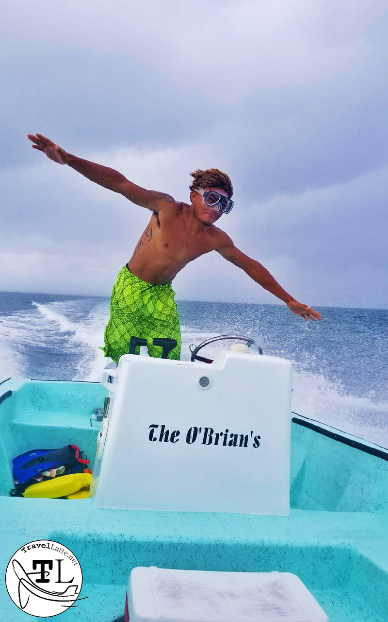 Getting to dive and snorkel sites on the Belize Barrier Reef requires certified guides. Our guide & skipper Afri with Tuff-E-Nuff Belize was awesome, and a little bit of a daredevil.