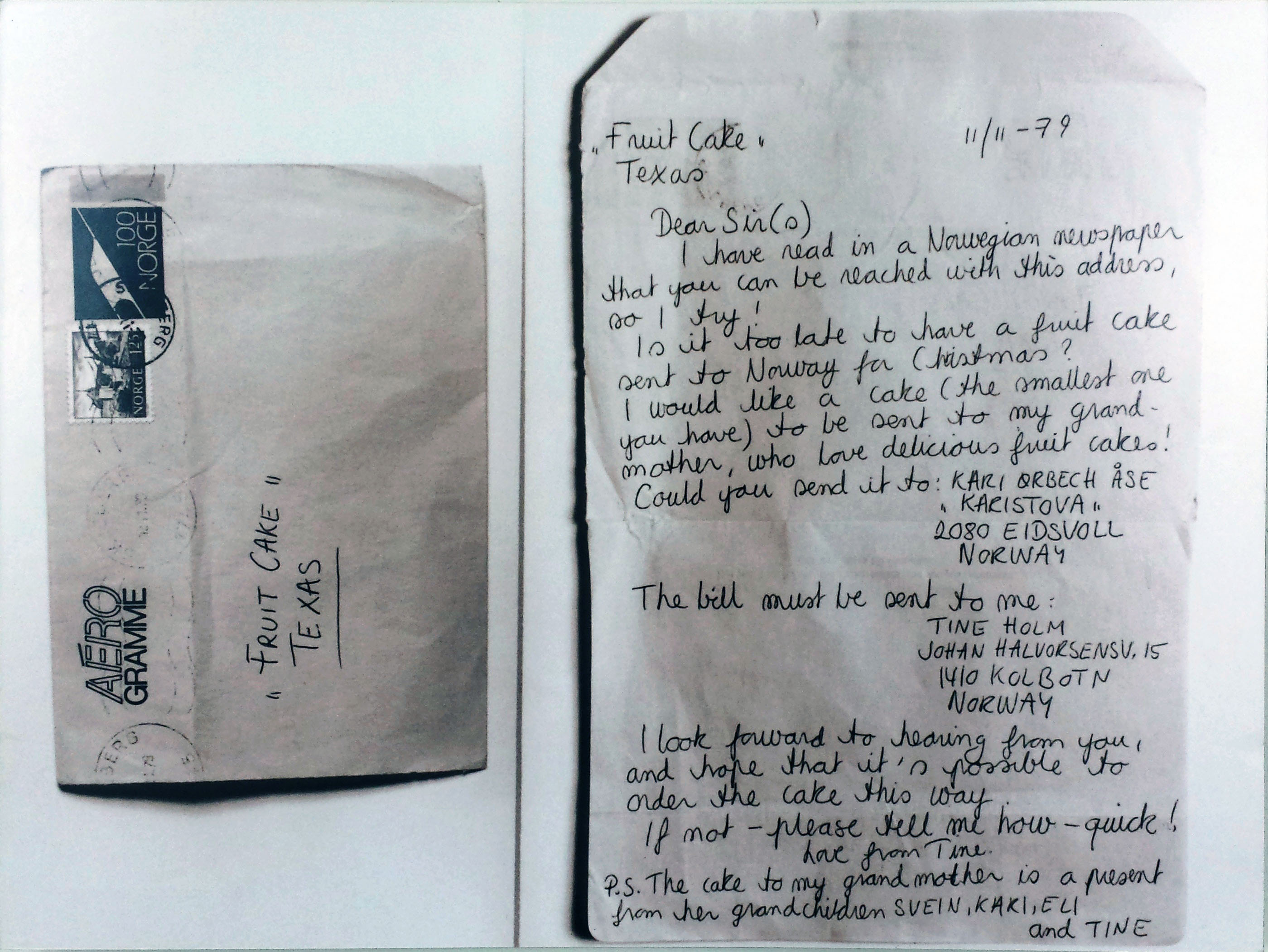 A letter from Norway addressed to ‘Fruitcake, Texas’.