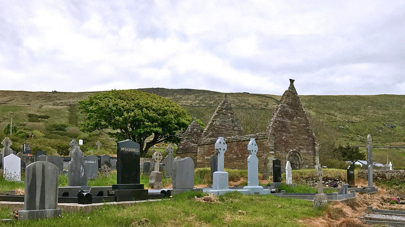 The 12th Century Kilmaldedar Church and graveyard are an easy addition to your visit to the Gallarus Oratory.