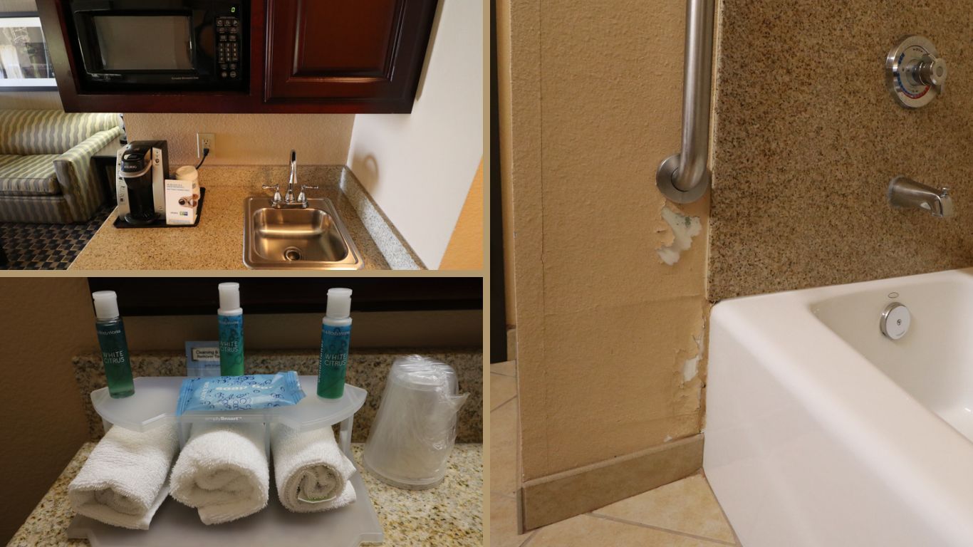 Photos from our rooms showing amenities and room for improvement from Our Stays at the Ennis Holiday Inn Express and Suites on TravelLatte.